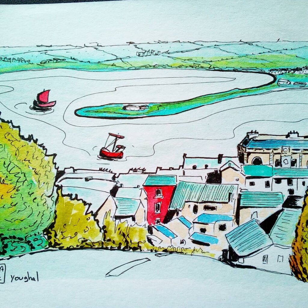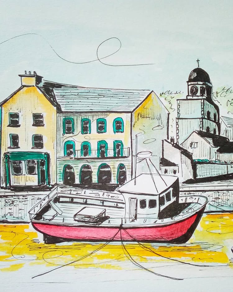Here, I share my passion for Irish culture and landscapes, creating detailed illustrations that celebrate Youghal’s stunning architecture, from the 13th-century St. Mary’s Collegiate Church to the iconic Clock Gate Tower, and the beautiful coastline that has attracted visitors for generations.