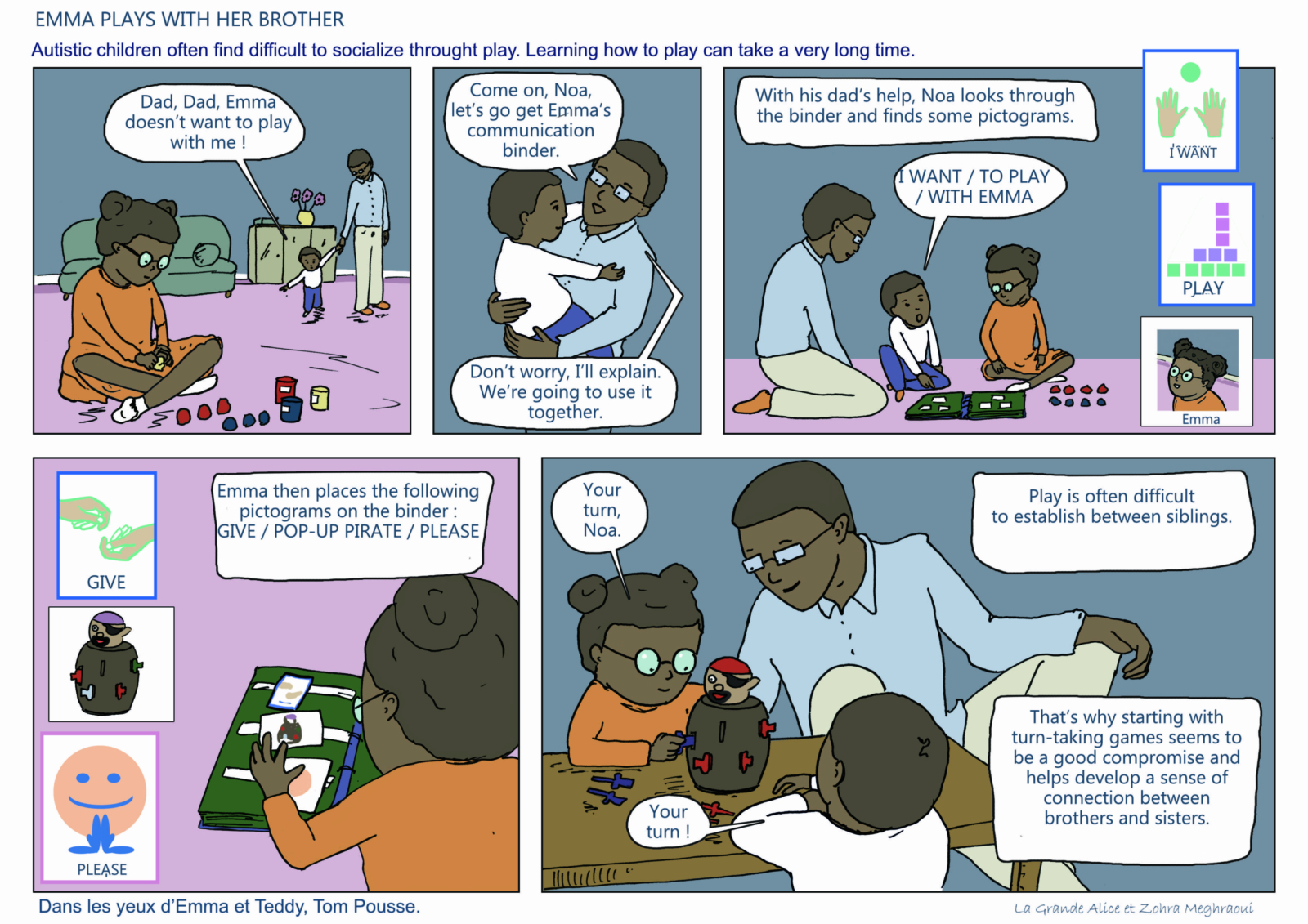 Autisme : “In Emma and Teddy’s eyes” written by Zohra Meghraoui, published in 2018, Tom Pousse publisher.